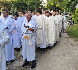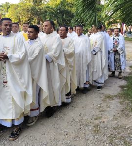 Waingapu, 15 Juni 2025 – UnioKeuskupanAtambua.com – Sebanyak 29 Imam peserta On Going Formation (OGF) Regio Nusa Tenggara (Nusra) dari tiga keuskupan—Atambua, Ende, dan Kupang—merayakan Ekaristi bersama umat Paroki Maria Bunda Saling Menolong (MBSM) Kambajawa, Sumba Timur, dalam suasana khidmat Hari Raya Tritunggal Mahakudus, Minggu (15/6/25).